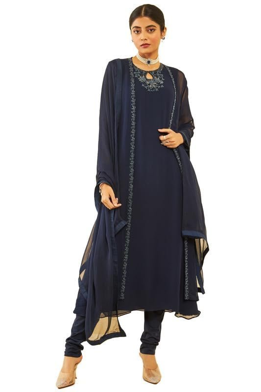 Soch Womens Georgette Beadwork Embellished A-Line Chudidar Suit Set with Shrug