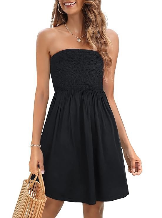 - Swimsuit strapless outfit has two ways to get dressed, you can wear it as the short tube top Sundresses women, or you can wear it as the long smocked skirt with the T-shirt or crop top.