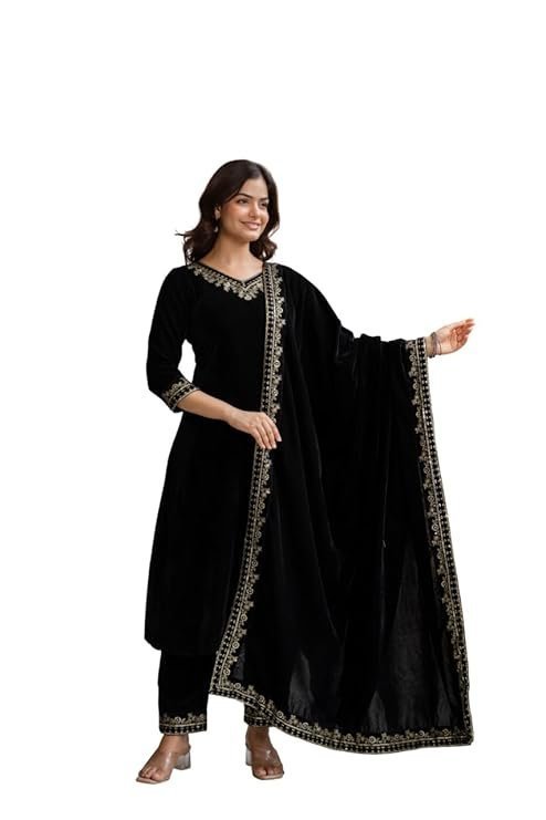 Be the first to review “TRENDMALLS Women’s Velvet Embroidery Salwar Suit Set Kurta Pant with Dupatta for Women”